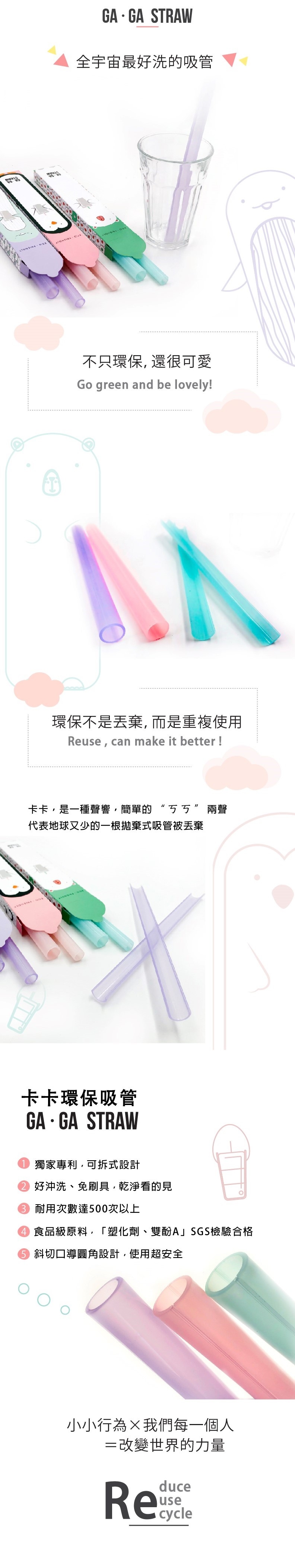 卡卡吸管透明2入組一粗一細 (北極熊) : 透明湖水綠