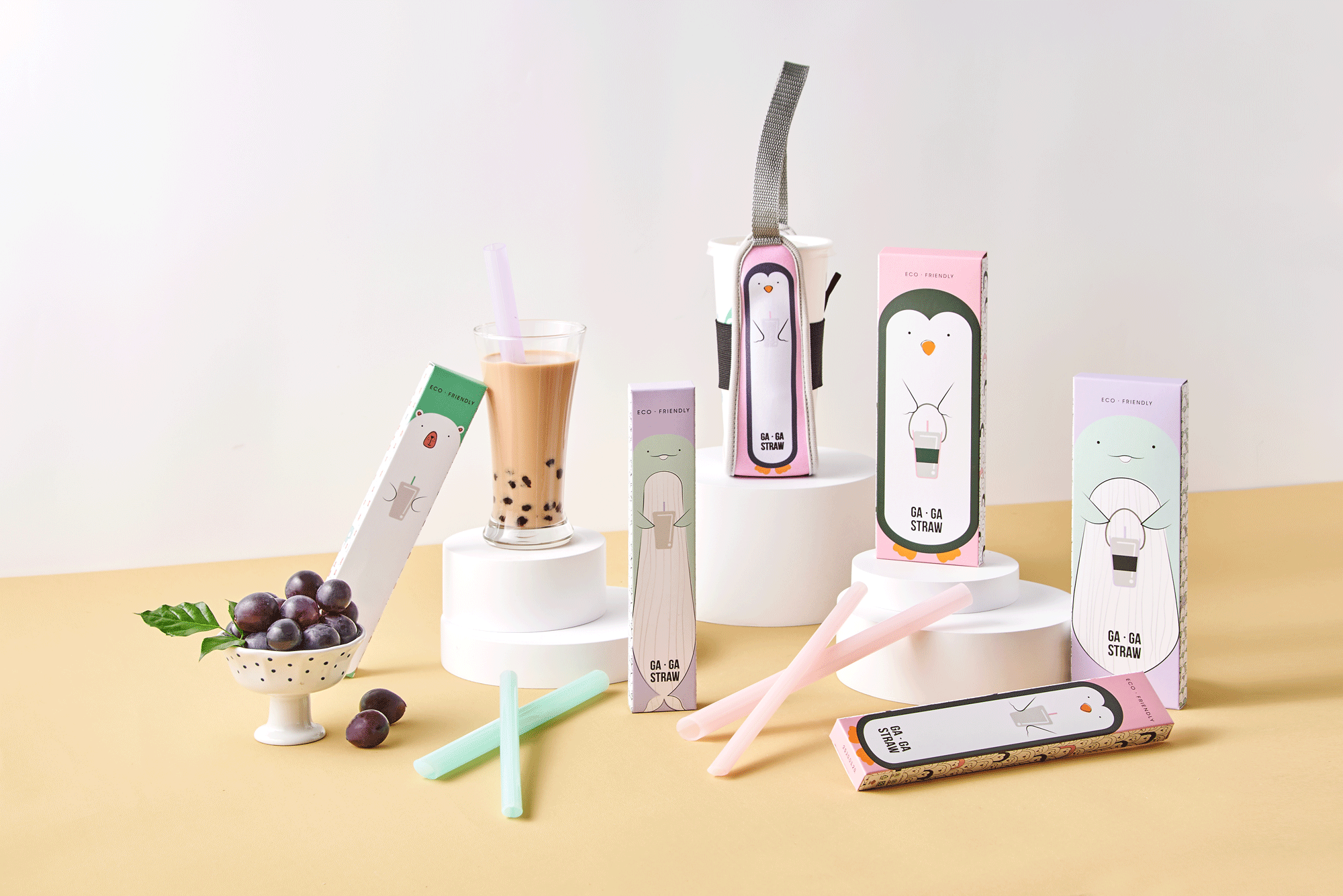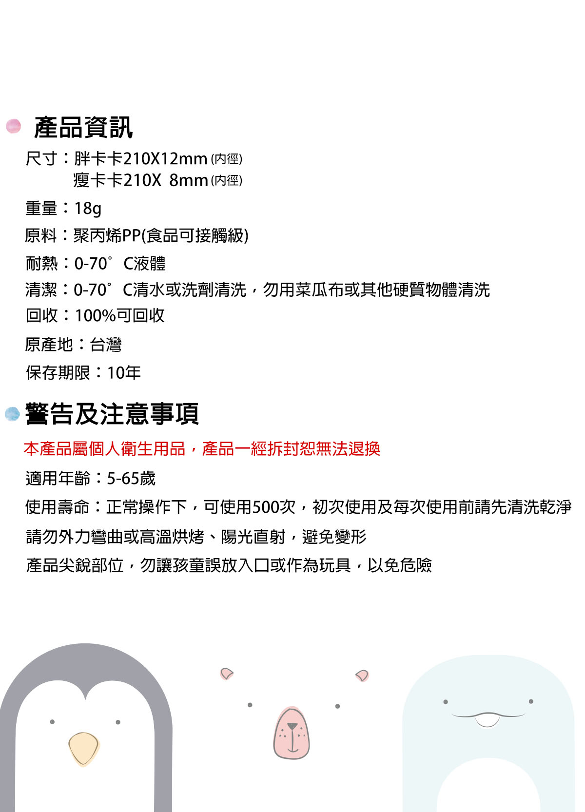 卡卡吸管透明2入組一粗一細 (企鵝) : 透明粉紅