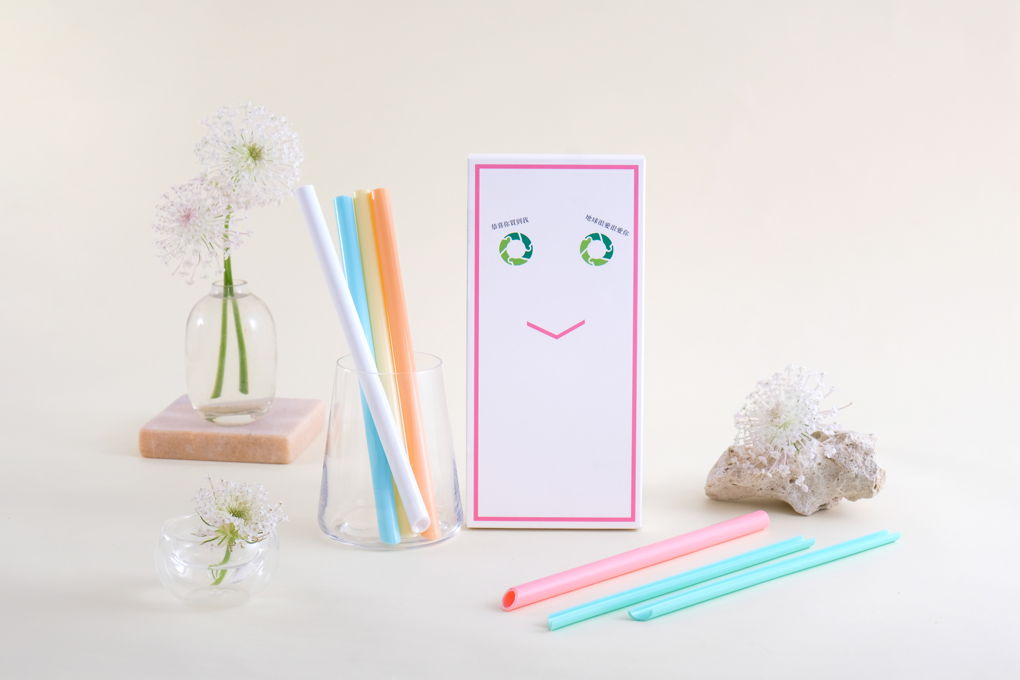 卡卡吸管6入組 (粉盒): 粉 / 橘 / 黃 / 綠 / 藍 / 白
