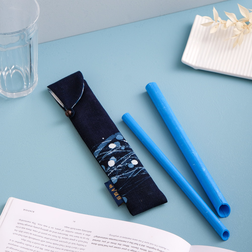 卓也藍染聯名限定版吸管收納套組(一粗一細+天然藍染收納袋)