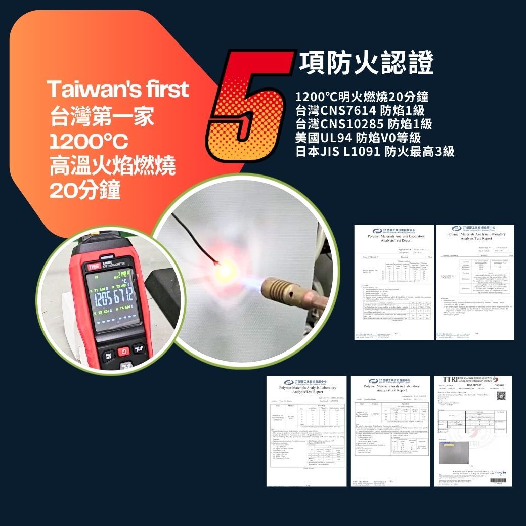 2. 通過最嚴格明火1200度20分鐘測試(台灣塑膠中心)